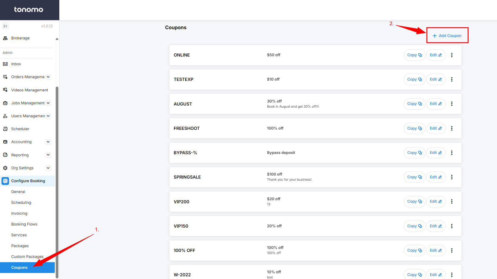 Go to Coupons under Configure Booking.